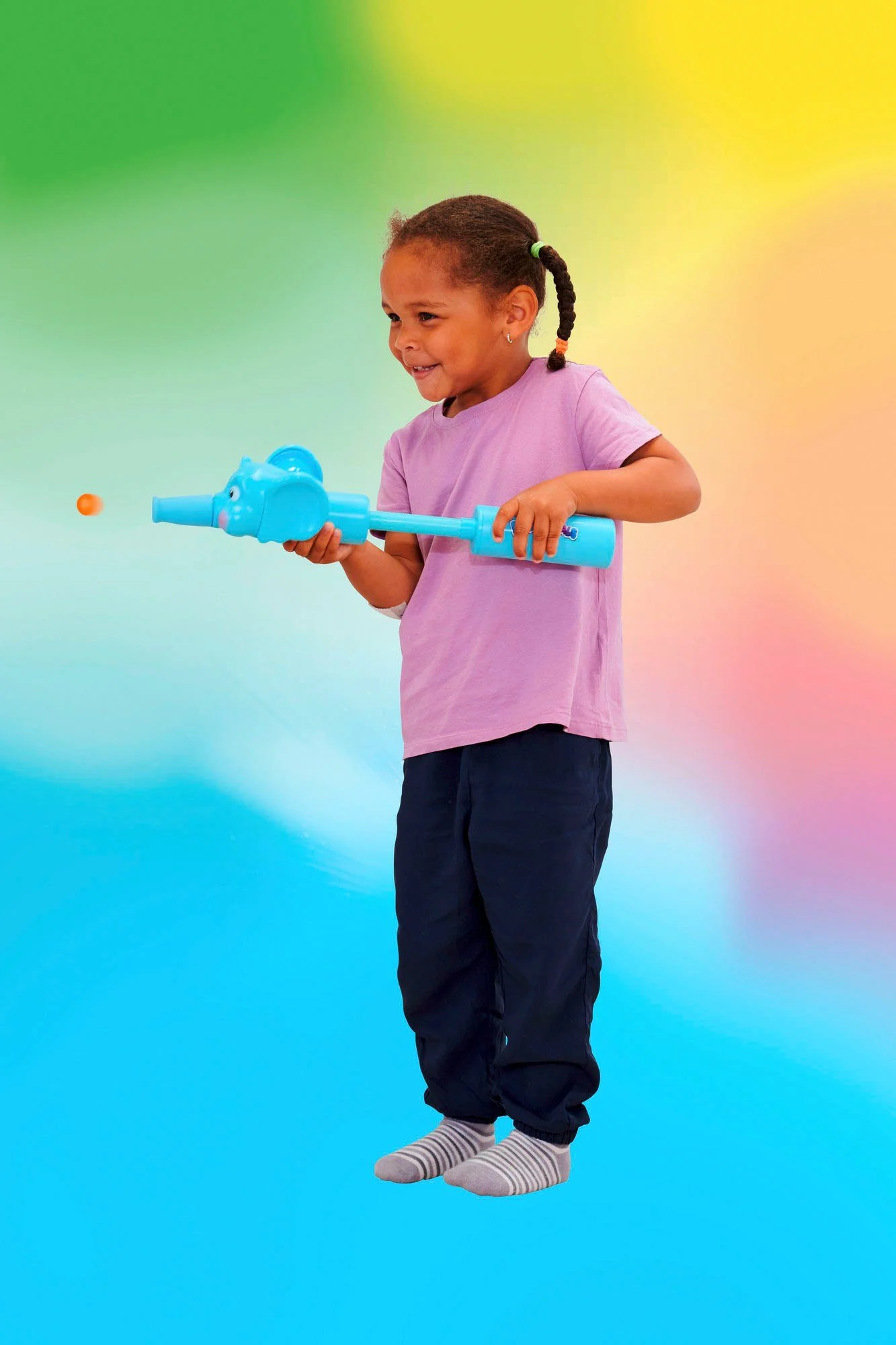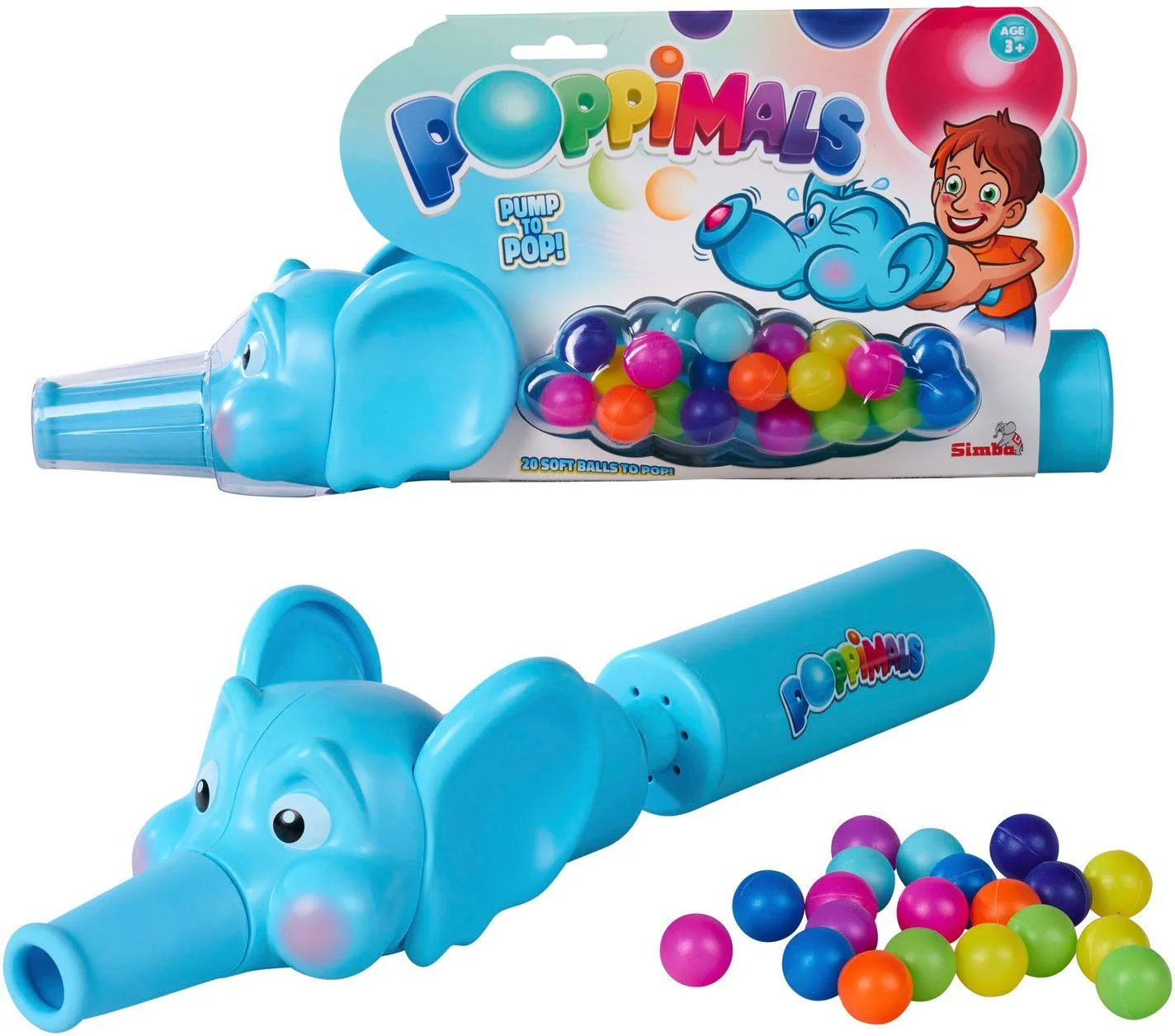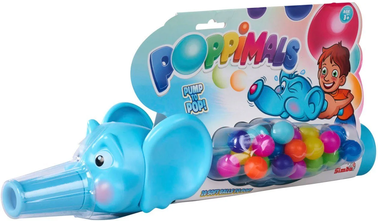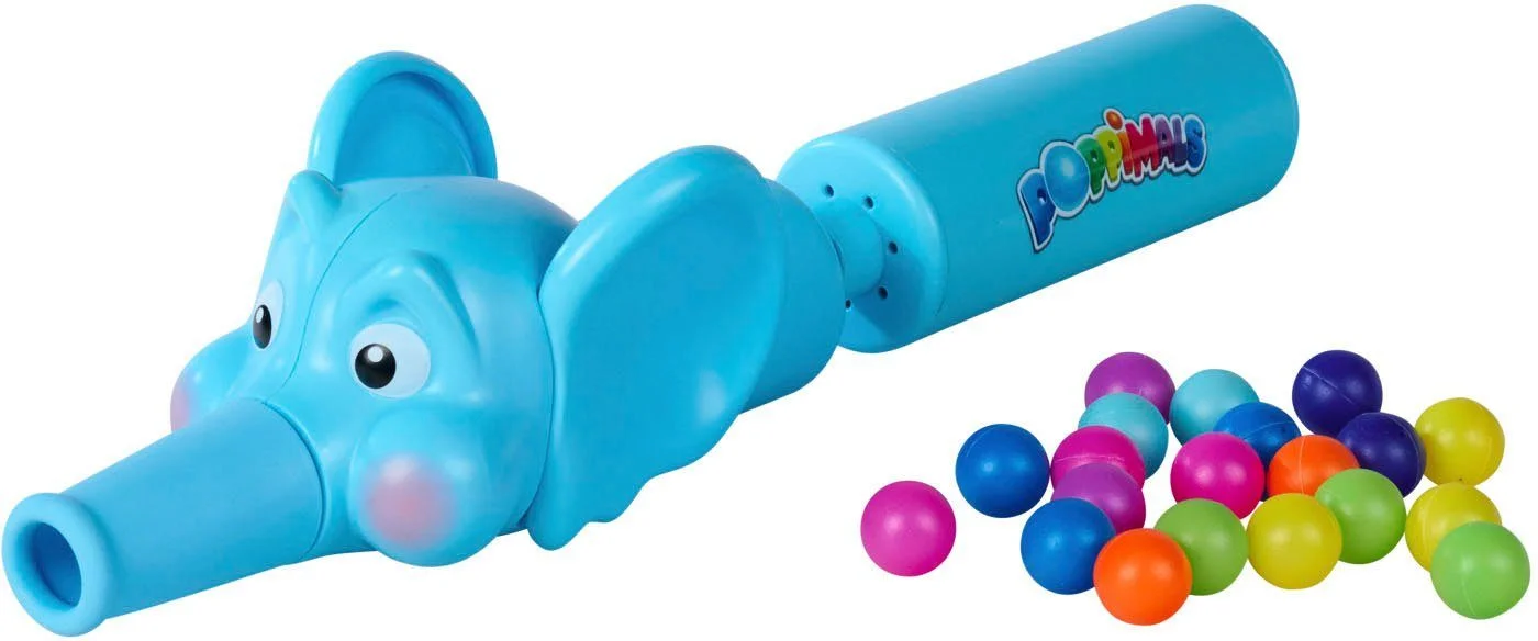 Mit der Ballkanone „Poppimals Elefant“ wird jeder Spielnachmittag zum bunten Bälle-Spektakel. Im langen, soften Silikon-Rüssel des Elefanten ist reichlich Platz für die farbigen Bälle. Durch Pumpen am Griff wandern die Bälle nach vorne und werden mit einem lustigen Effekt aus dem Rüssel gepustet – immer wieder aufs Neue.