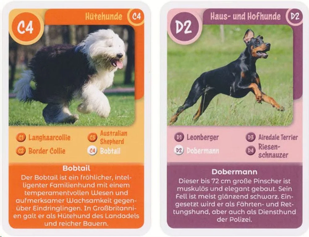 Highlights: Kompaktes Hunde-Quartett mit informativen Daten, farbenfrohen Karten und klassischem Spielprinzip. Ideal für Hundefans und als kurzes Lernspiel für zwischendurch.